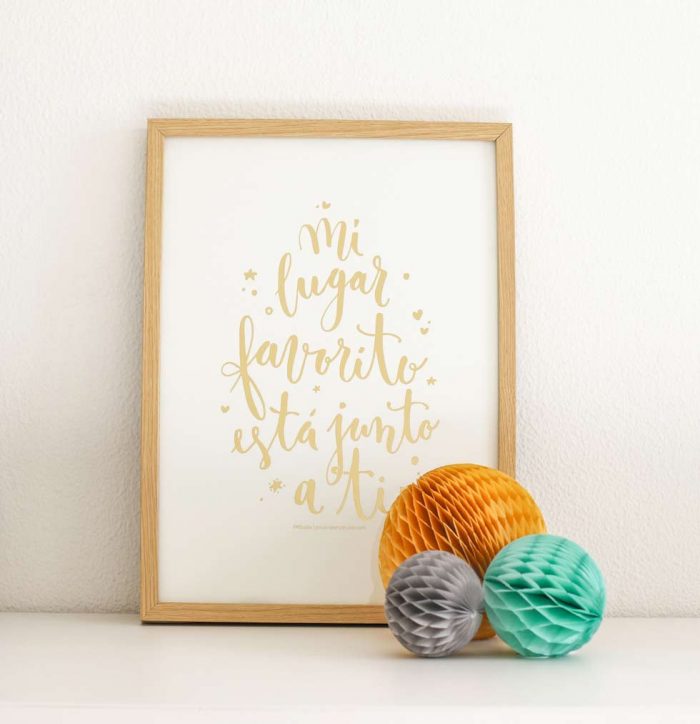 Si eres amante de la decoración y estás siempre a la última, la lámina “Mi lugar favorito está junto a ti” especial edición DORADO… ¡¡¡tiene que estar en tu casa!!!