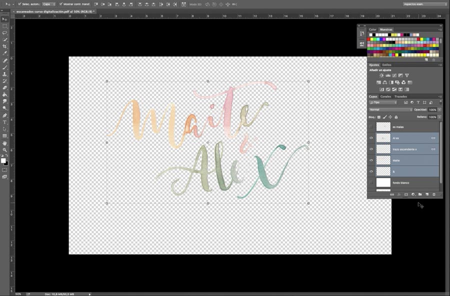 – Cómo aislar tus letterings de acuarela color para armar una composición en Photoshop.