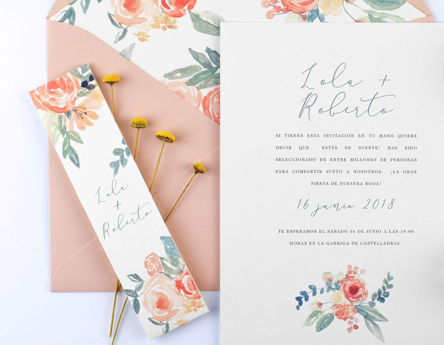 ¿Te enamoran las invitaciones de boda en acuarelas? Si la respuesta es si, la invitación de bodas “Valentina” es para ti. Los colores, la armonía del ramo y las tipografías hacen que este modelo sea ideal para diferentes tipos de boda: bodas campestres, bodas rústicas, bodas románticas, bodas clásicas y más.