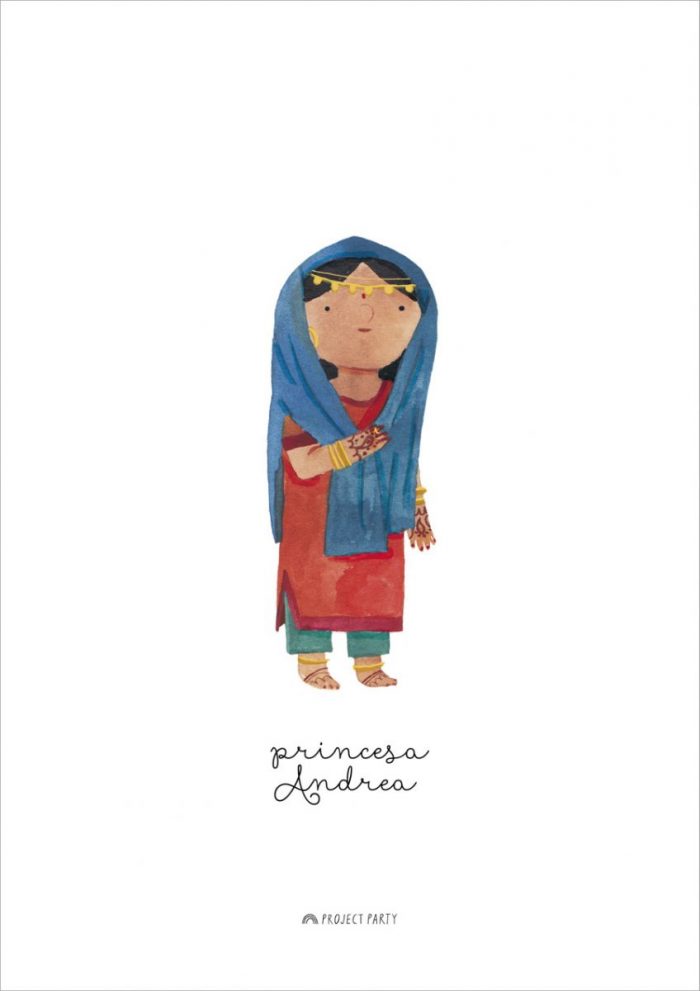 Cada princesita está ilustrada con mucho amor y cariño, cada una tiene su propia personalidad y características. Hemos usado acuarelas y pinceles para dibujar a todas las princesas y con un bonito lettering hemos escrito los títulos y los nombres de las princesitas.