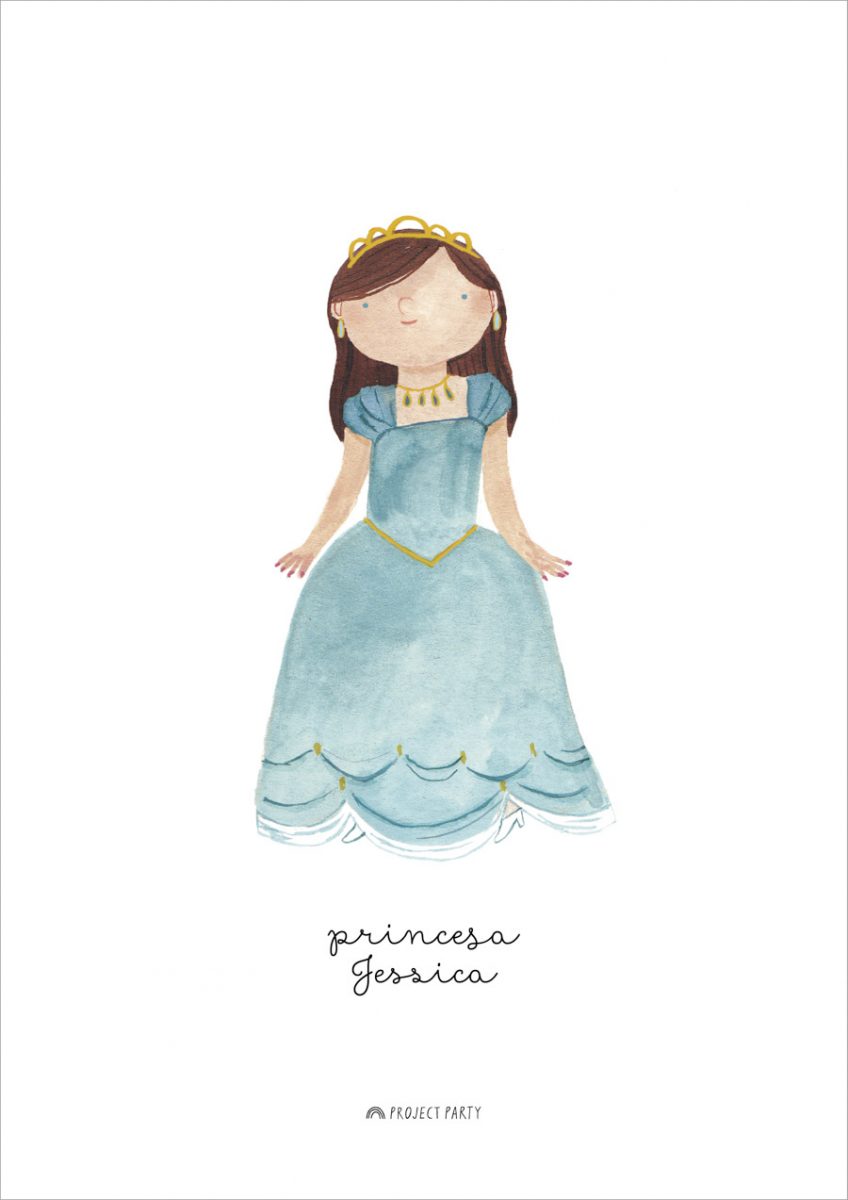 Cada princesita está ilustrada con mucho amor y cariño, cada una tiene su propia personalidad y características. Hemos usado acuarelas y pinceles para dibujar a todas las princesas y con un bonito lettering hemos escrito los títulos y los nombres de las princesitas.