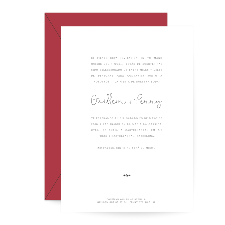 Las invitaciones se entregan sin manipular. Si quieres recibir las invitaciones listas para entregar, manipuladas y ensobradas, escríbenos a bodas@projectpartystudio.com y te informaremos.
