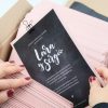 ¡La invitación de boda “board” lo tiene todo! Vuestros nombres están escritos en hand lettering que luego digitalizamos para incluirlos en vuestra invitación, el fondo de textura pizarra le da un toque moderno y divertido.