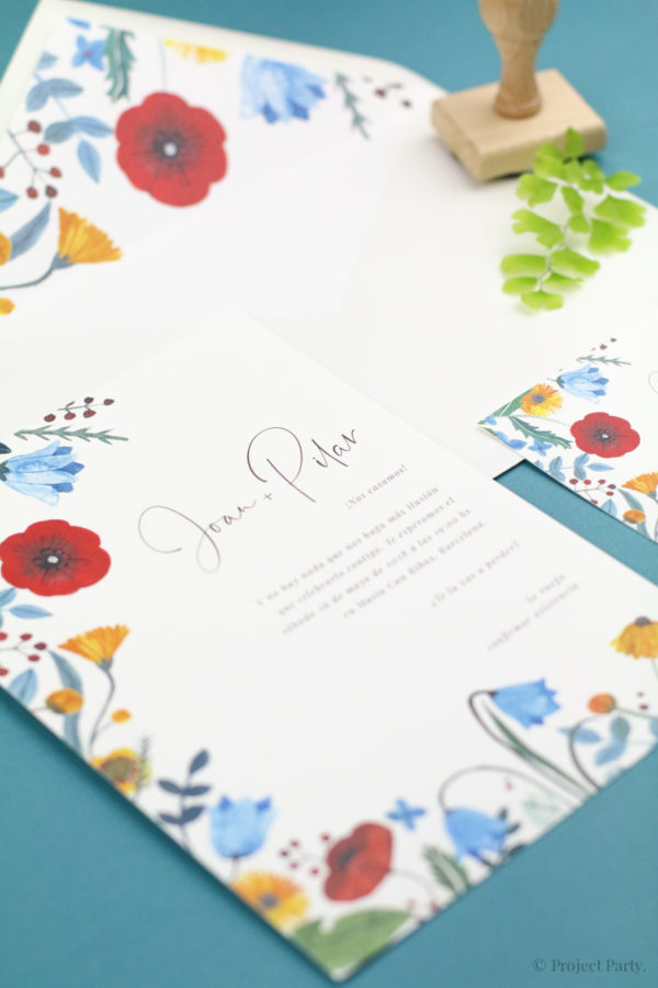 ¡La invitación de boda “Primavera” es solo para parejas atrevidas! Las ilustraciones en acuarelas de flores vibrantes y llenas de color transmiten energía y alegría. Combina tu invitación con un sobre que contraste y no habrá invitado que no diga ¡Sí, quiero! Ideal para diferentes tipos de boda: bodas campestres, bodas románticas, bodas clásicas (no típicas) y muchas más.