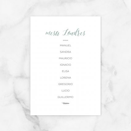 Minuta de boda personalizada con el menú que se servirá en vuestra boda y, si lo queréis, también se puede agregar el nombres, iniciales de los novios y la fecha de la boda. El precioso diseño del menú de boda Iris además de vestir la mesa será un recuerdo inolvidable del banquete de la boda.
