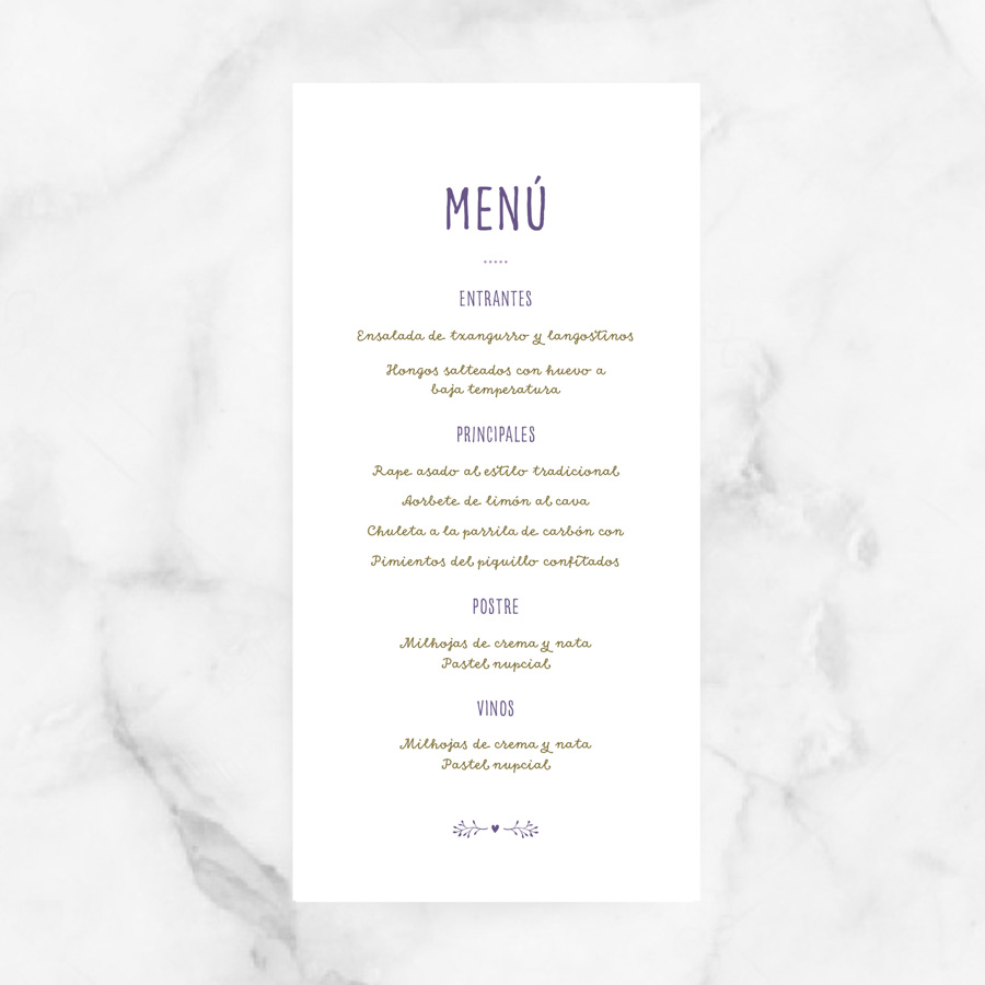 Menú de boda “Lavanda Chic”