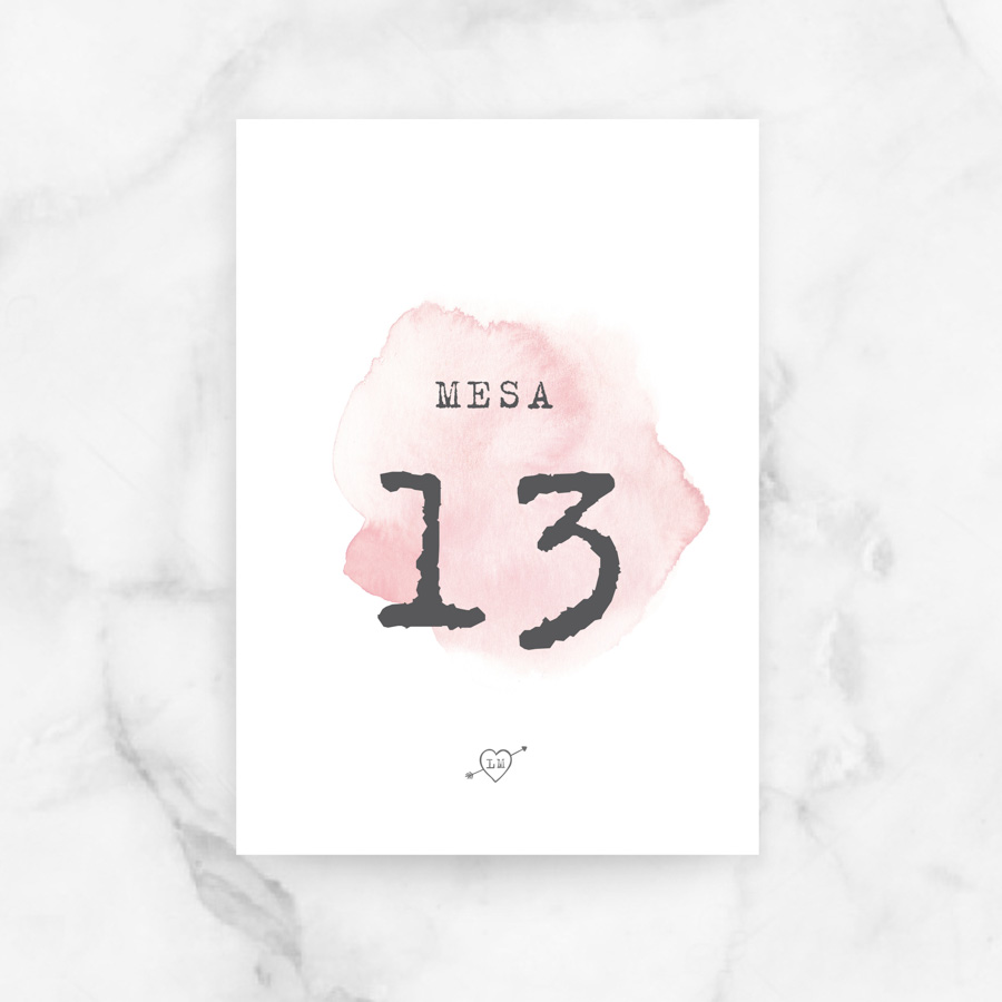La tarjeta con el número de mesa, también llamado mesero de boda, del modelo Bianca va personalizada con vuestros nombres y fecha de la boda. Es el toque ideal que dará personalidad a las mesas de tu boda. Puedes poner los números de mesa en un marco, sujetarlos con una pincita o simplemente apoyarlos en el centro de mesa.