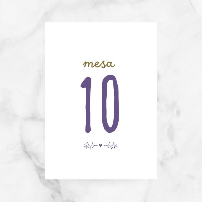 La tarjeta con el número de mesa, también llamado mesero de boda, del modelo Lavanda chic va personalizada con vuestros nombres y fecha de la boda. Es el toque ideal que dará personalidad a las mesas de tu boda. Puedes poner los números de mesa en un marco, sujetarlos con una pincita o simplemente apoyarlos en el centro de mesa.