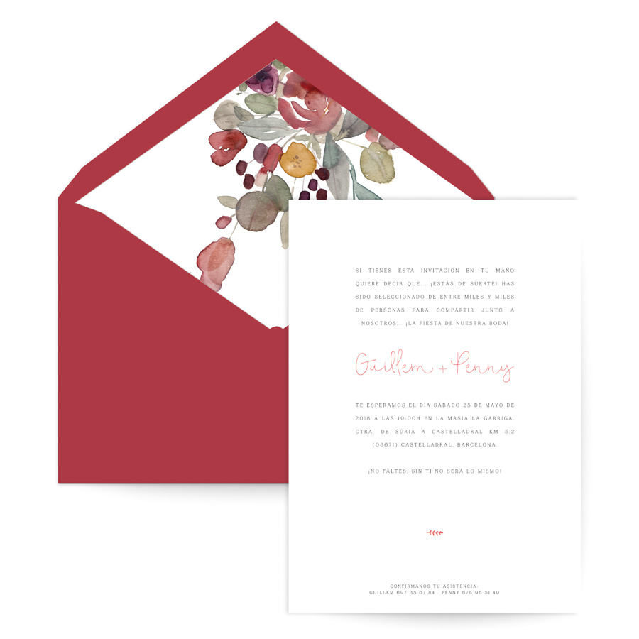 Nuestros sobres forrados premium “Fiorella” son ideales para entregar tus invitaciones de boda. Cada sobre está forrado artesanalmente con preciosos estampados ilustrados en acuarela en nuestro estudio.